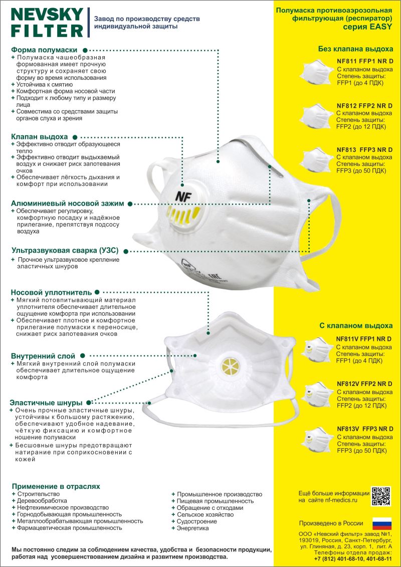 Класс защиты: FFP2, до 12 ПДК.